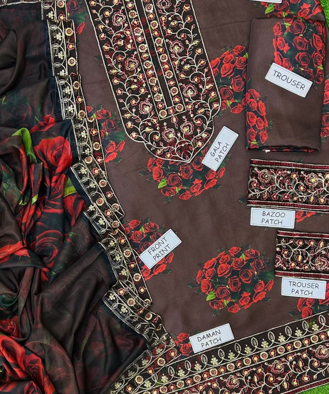 3PCS Unstitched Shamoz Silk Suit – Luxury Embroidered Digital Print